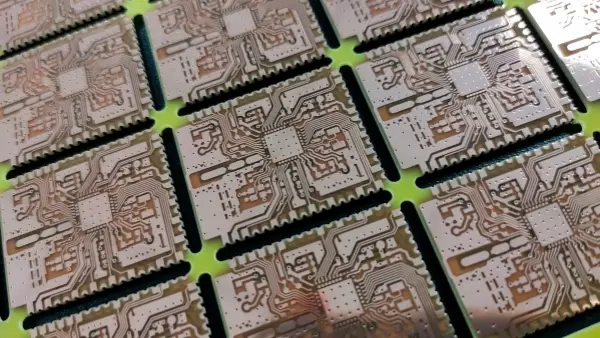 ハーフホールの形成が終わったら、レジストを剥がしてからエッチングする。これにより、銅表面の酸化を防ぎ、銅の取り残しや短絡を防ぐことができます。これにより、メタライズド・ハーフホールPCBの歩留まりが向上する。.